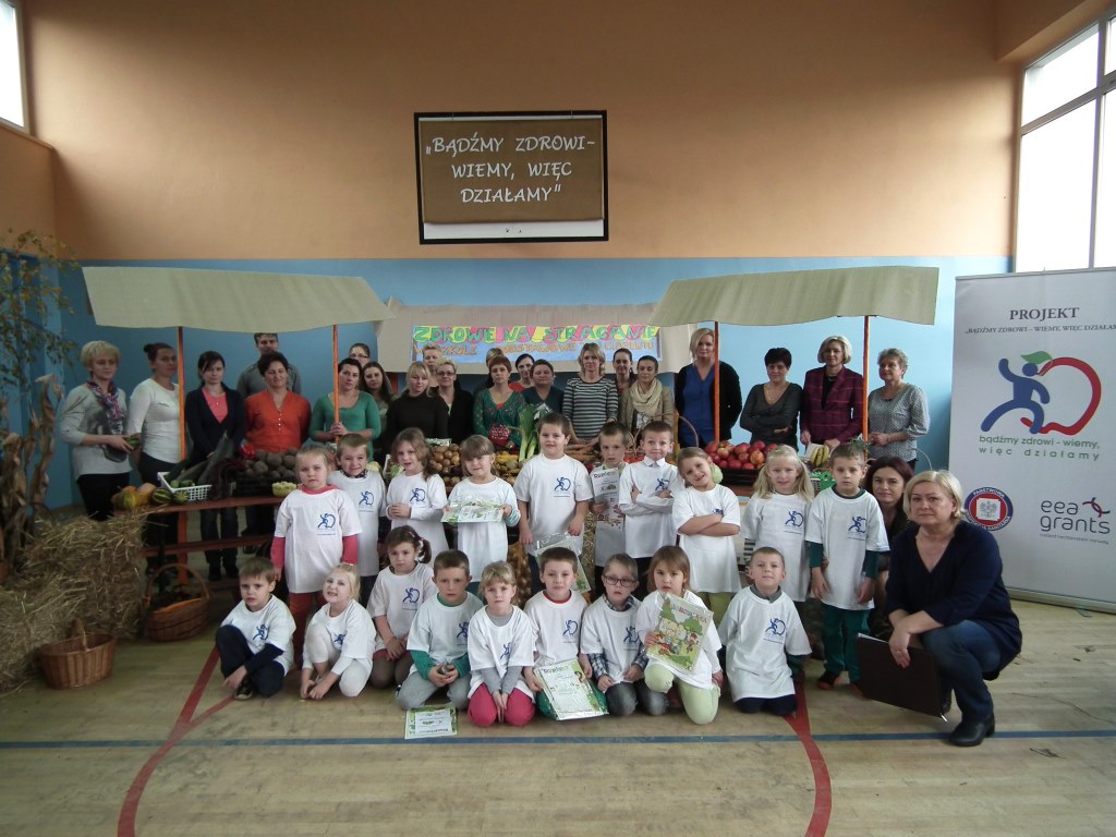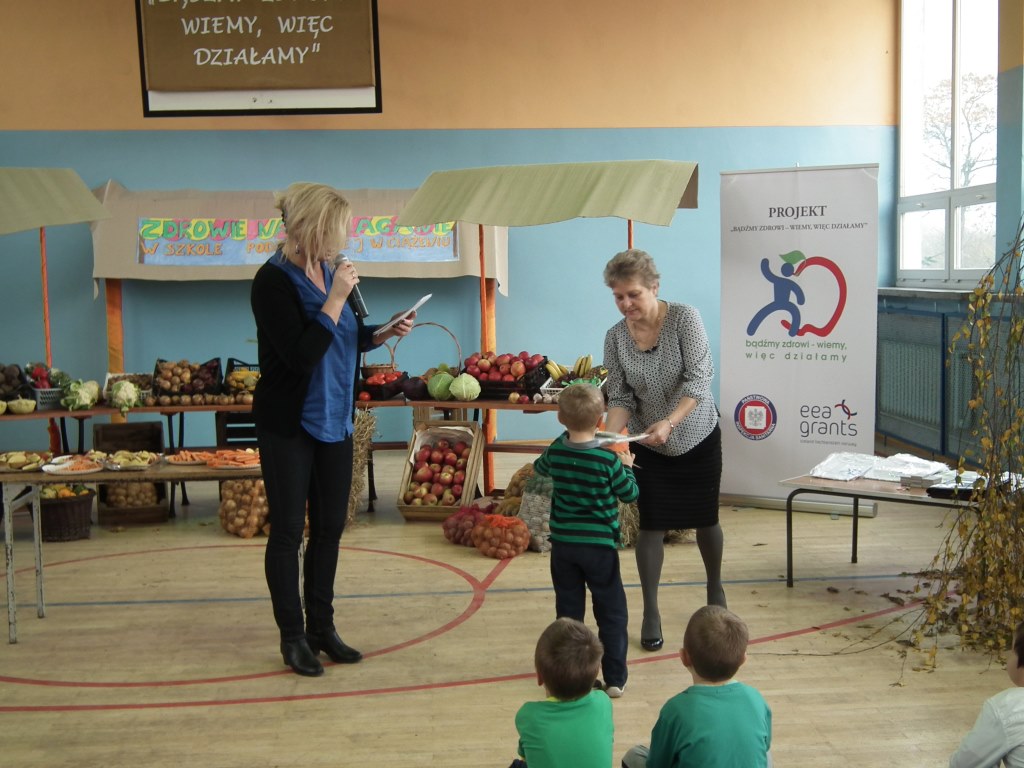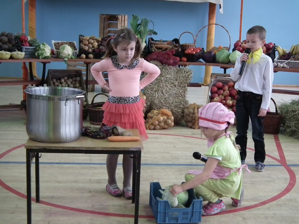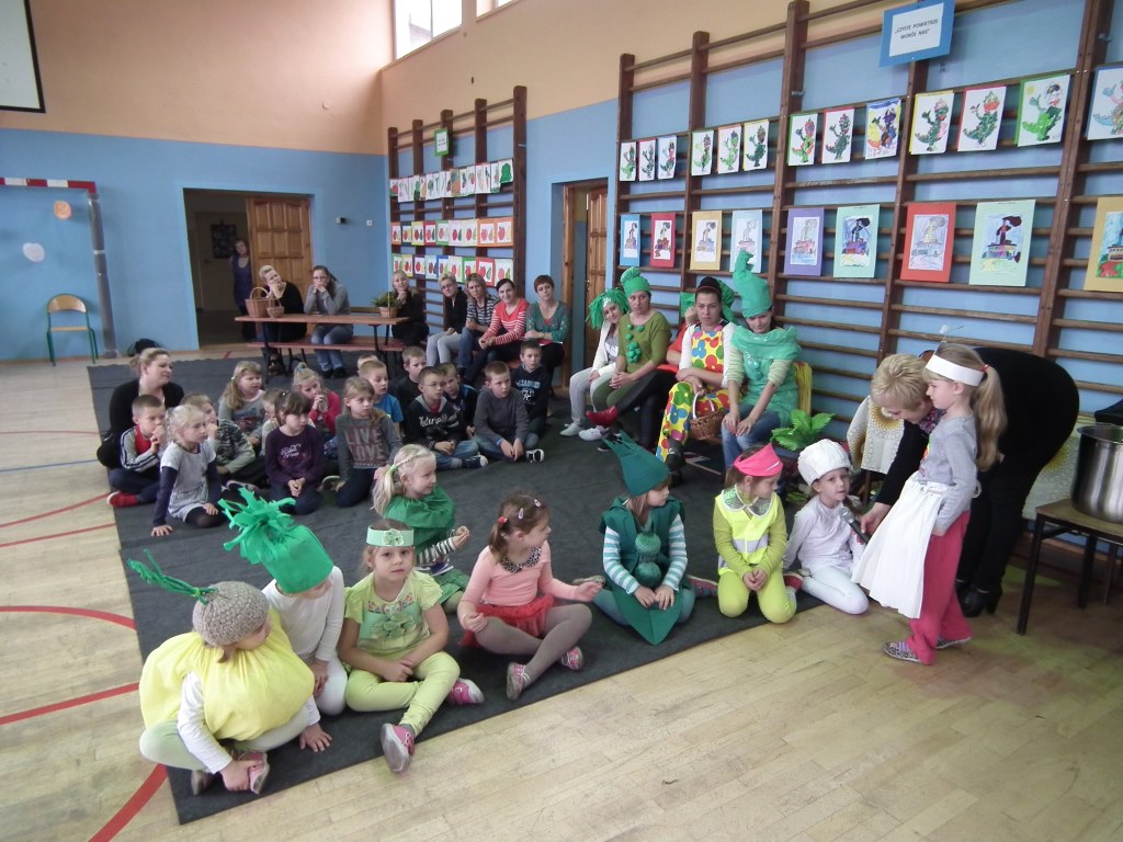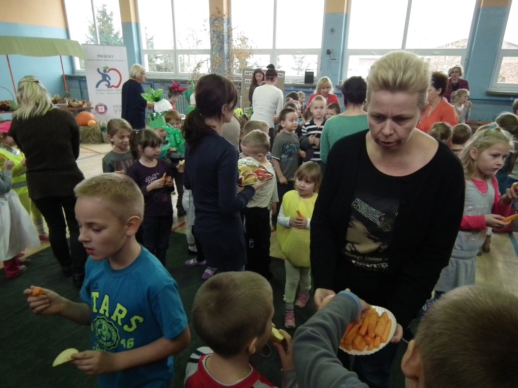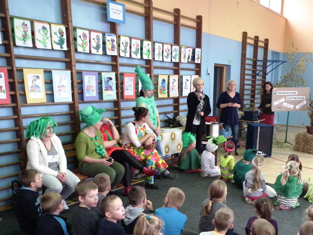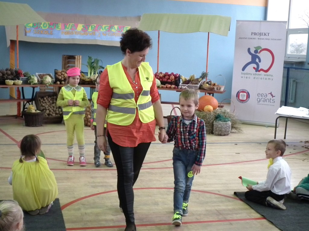 Dzieci z oddziału przedszkolnego pięciolatków razem z wychowawcą grupy Jolantą Wolnicką i koordynatorem zdrowia w naszej szkole Panią G. Trawką przygotowały liczne atrakcje z okazji festynu o zdrowym odżywianiu. Po powitaniu zaproszonych gości i wszystkich zgromadzonych osób, dzieci zaprezentowały krótką część artystyczną. Składała się ona z piosenek oraz inscenizacji wierszy: J. Brzechwy "Na straganie" i J. Tuwima "Warzywa". Odbył się też pokaz mody odblaskowej w której dzieci uczestniczyły razem z mamami. Zaprezentowano pomysły na stroje z elementem odblasku. Do atrakcji zaliczyć można występ kilku mam, które zaimprowizowały krótką scenkę do wiersza Brzechwy "Pomidor" z podkładem muzycznym pod tym samym tytułem. Drogie Mamy! Brawo! Do innych atrakcji można zaliczyć cześć sportową ,w której uczestnicy mogli wykazać się zręcznością, sprawnością i pomysłowością w różnych konkurencjach . W festynie uczestniczyła również Pani Małgorzata Pluta z PSSE w Słupcy , współorganizator imprezy, która przygotowała dla dzieci niespodzianki w postaci dyplomów, koszulek i innych ciekawych prezentów. Na zakończenie rodzice przygotowali piknik, na który zaproszono gości oraz wszystkich uczestników.