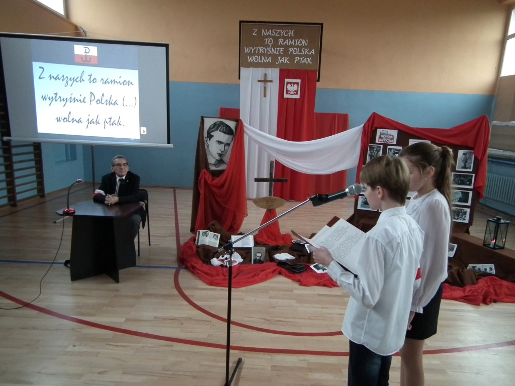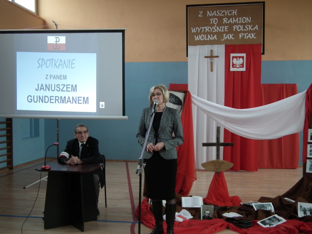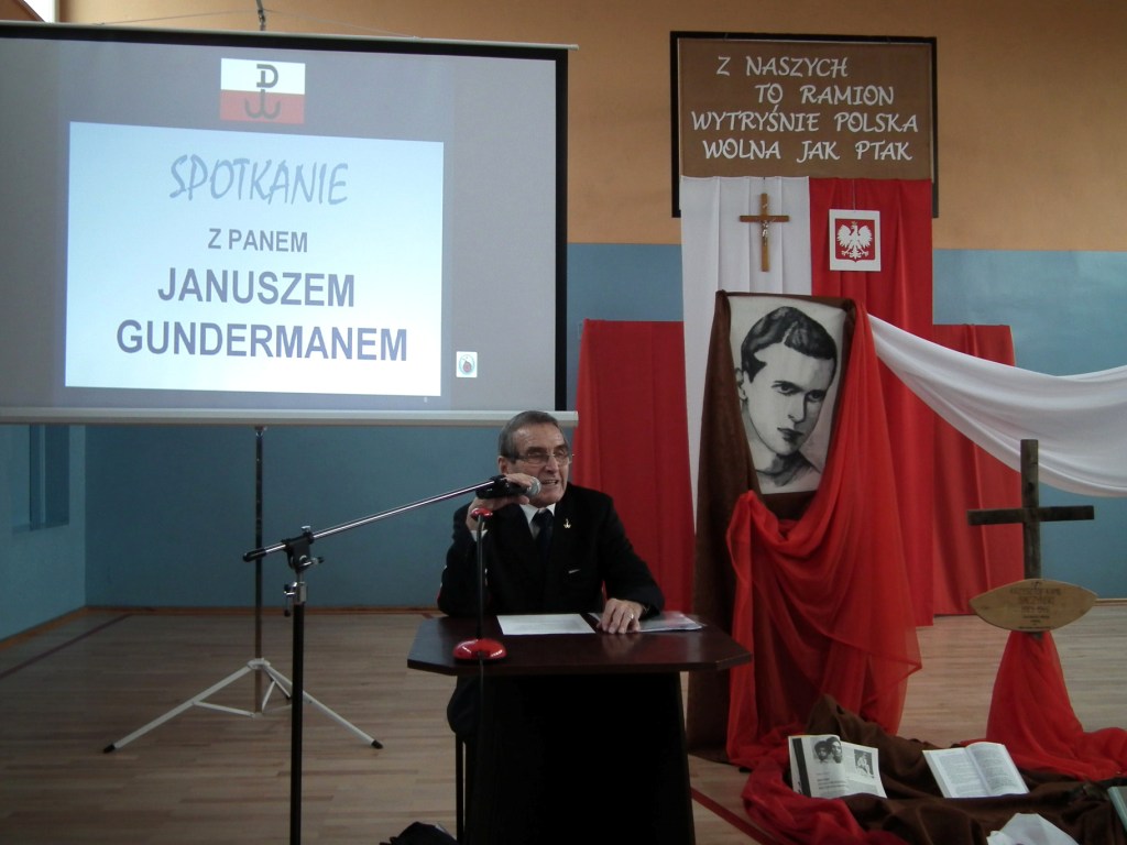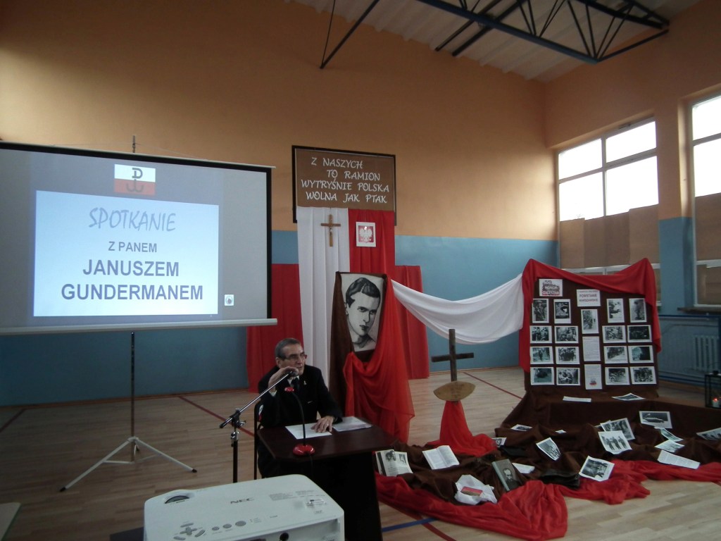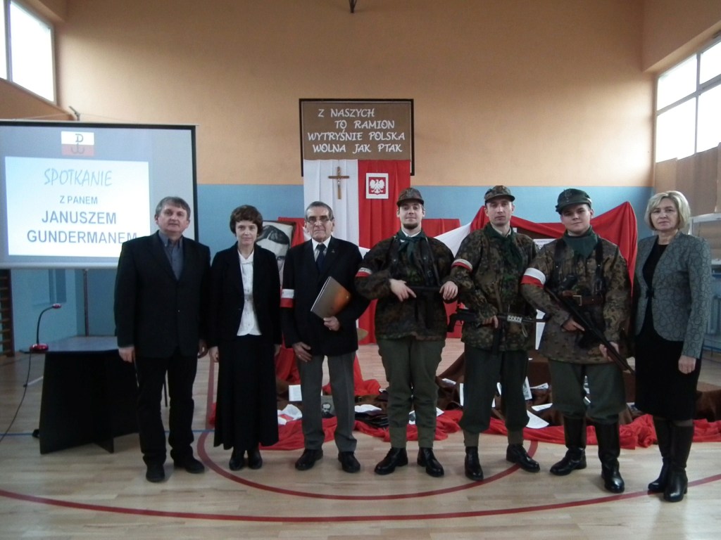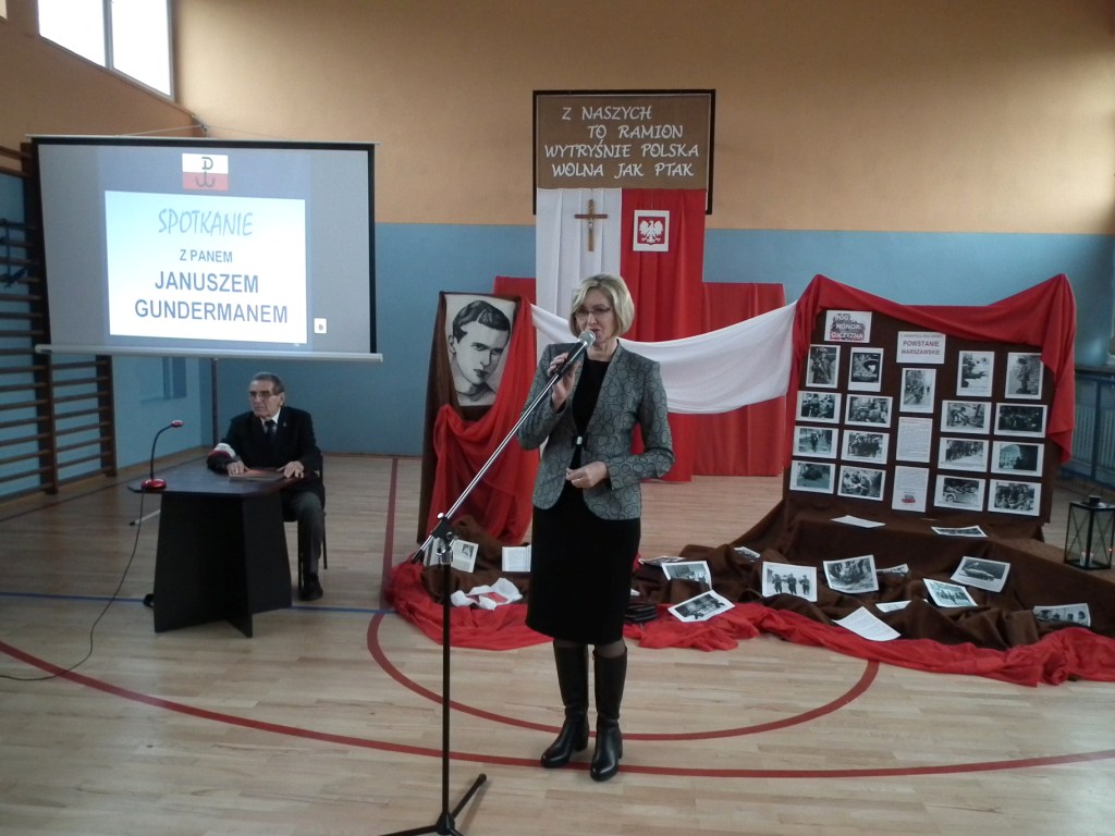 Dziś naszą szkołę odwiedził uczestnik Powstania Warszawskiego pan Janusz Gunderman, który opowiedział dzieciom przeżycia z okresu powstania. Żołnierz Armii Krajowej i uczestnik Powstania Warszawskiego, pomimo sędziwego wieku, kombatant bez wahania przyjął zaproszenie i przyjechał z Poznania wraz z członkami grupy rekonstrukcyjnej „Gustaw-Harnaś”. Jej nazwa nawiązuje do powstańczego batalionu, w którym walczył p. J. Gunderman. Występ młodych ludzi kultywujących tradycję powstania, prezentujących m. in. broń używaną przez powstańców, stanowił zwieńczenie spotkania społeczności szkolnej z bohaterskim człowiekiem, który opowiadał o swoich losach na tle II wojny światowej.
