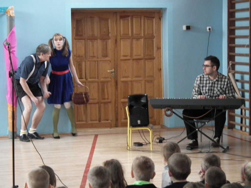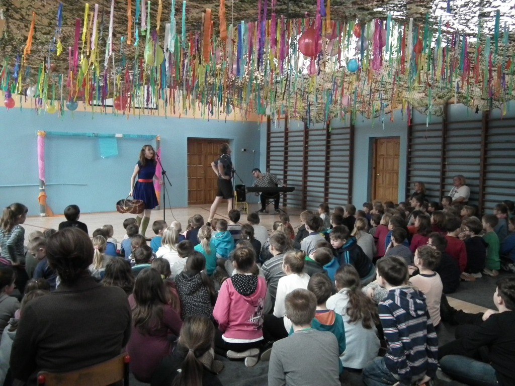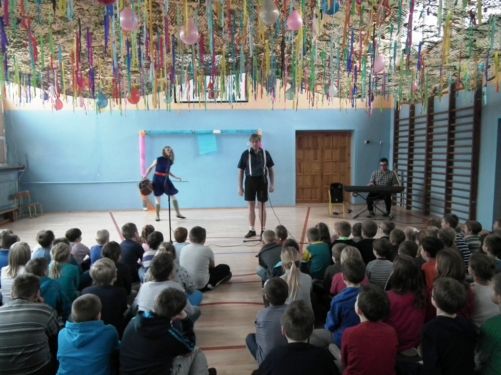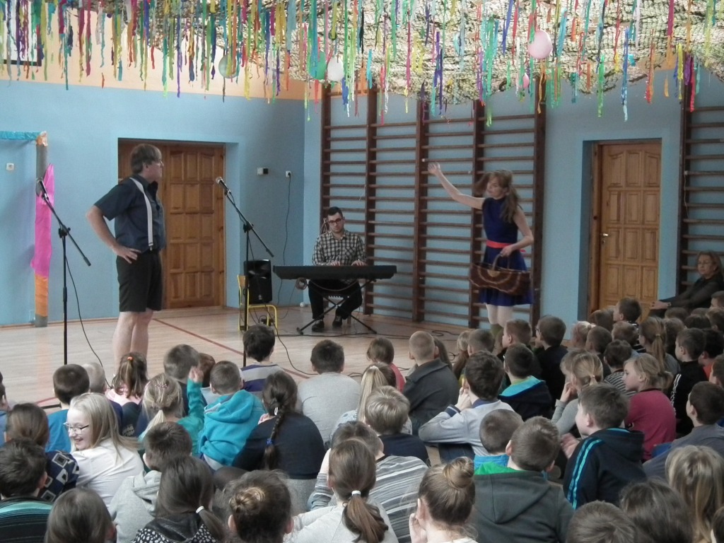W styczniu naszą szkołę odwiedziła grupa artystyczna Kogel Mogel, która sprawiła, że dzieci wspaniale się bawiły przy słuchowisku słowno-muzycznym "Jaś i Małgosia" wg Jana Brzechwy. Było to spotkanie z żywym słowem i żywą muzyką. Aktorzy grupy Kogel Mogel odwiedzają szkoły i zapraszają dzieci w niesamowitą podróż artystyczną, dzięki której można poznać obce kultury, zagościć w operze, teatrze oraz sali koncertowej.