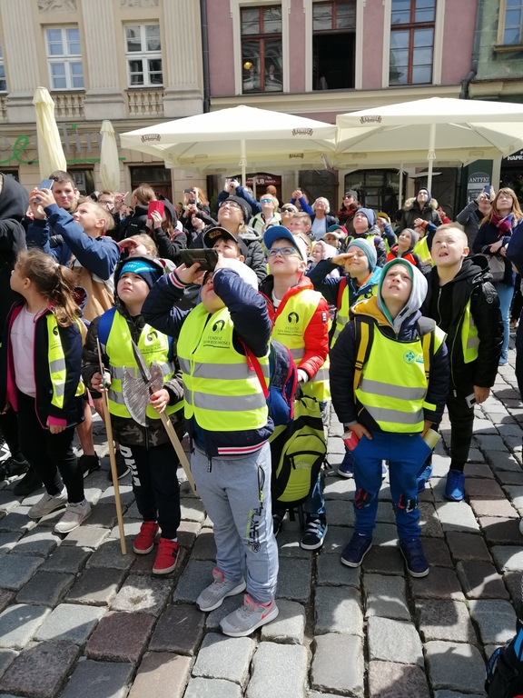Kolejnym punktem wyprawy był spacer po starym rynku i oczywiście oglądanie koziołków na ratuszowej wieży. Dzieci sprawdziły, że rzeczywiście bodą się one 12 razy :)