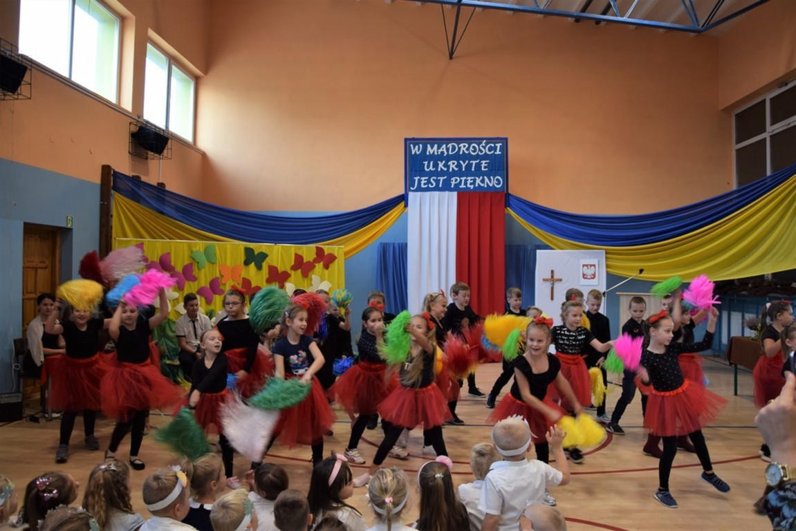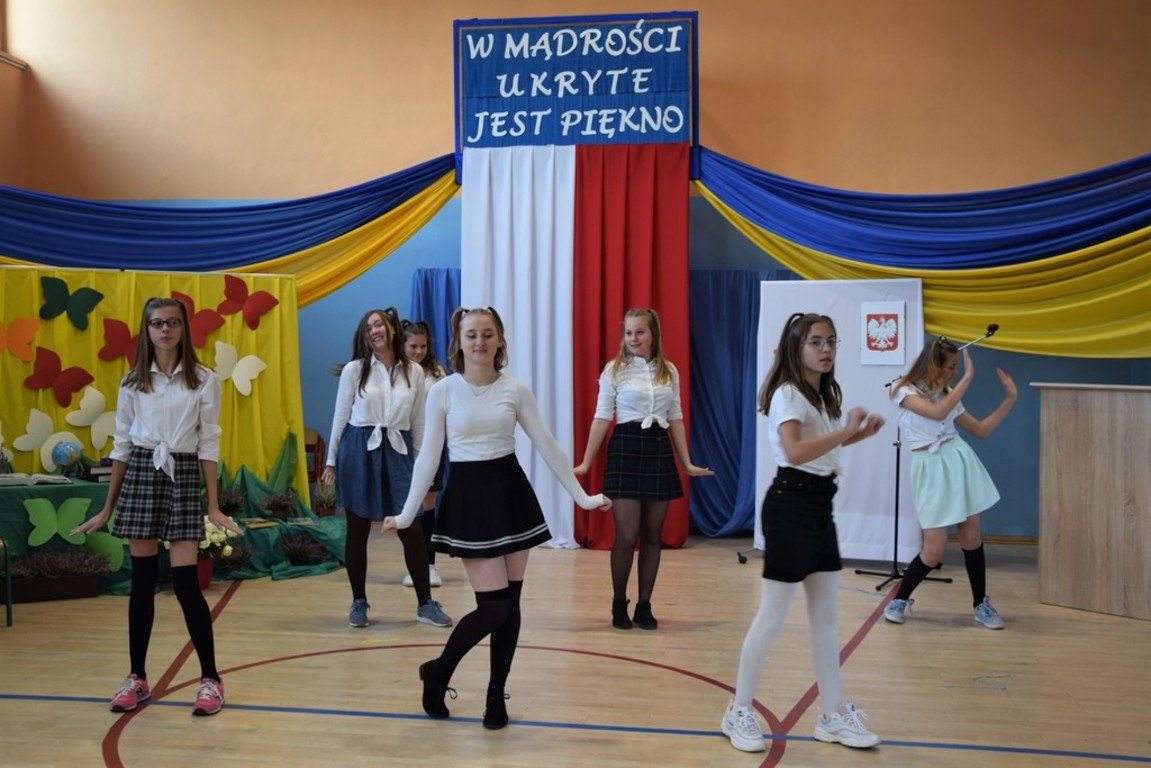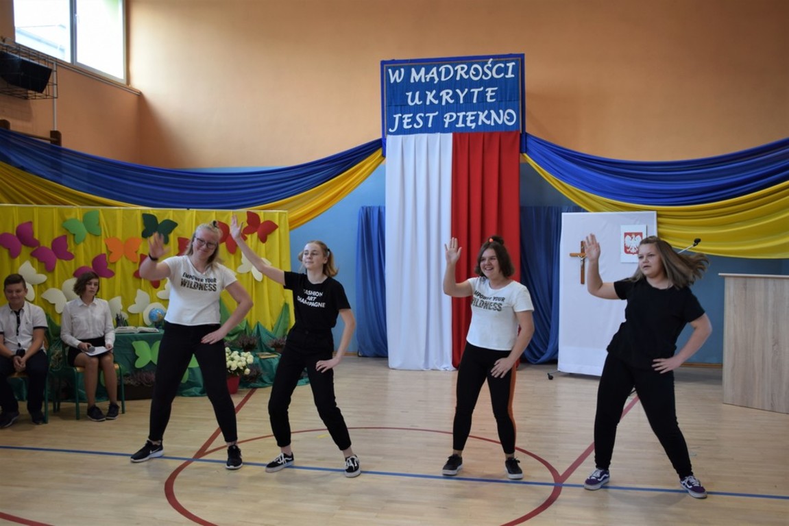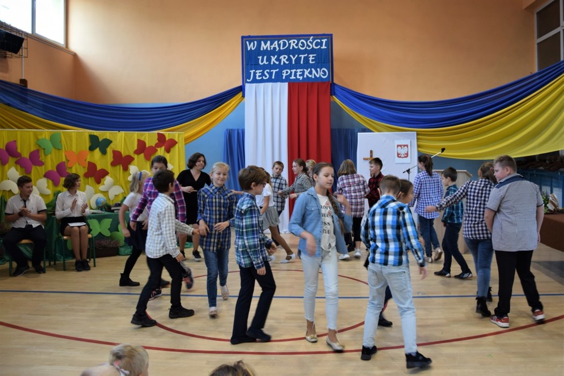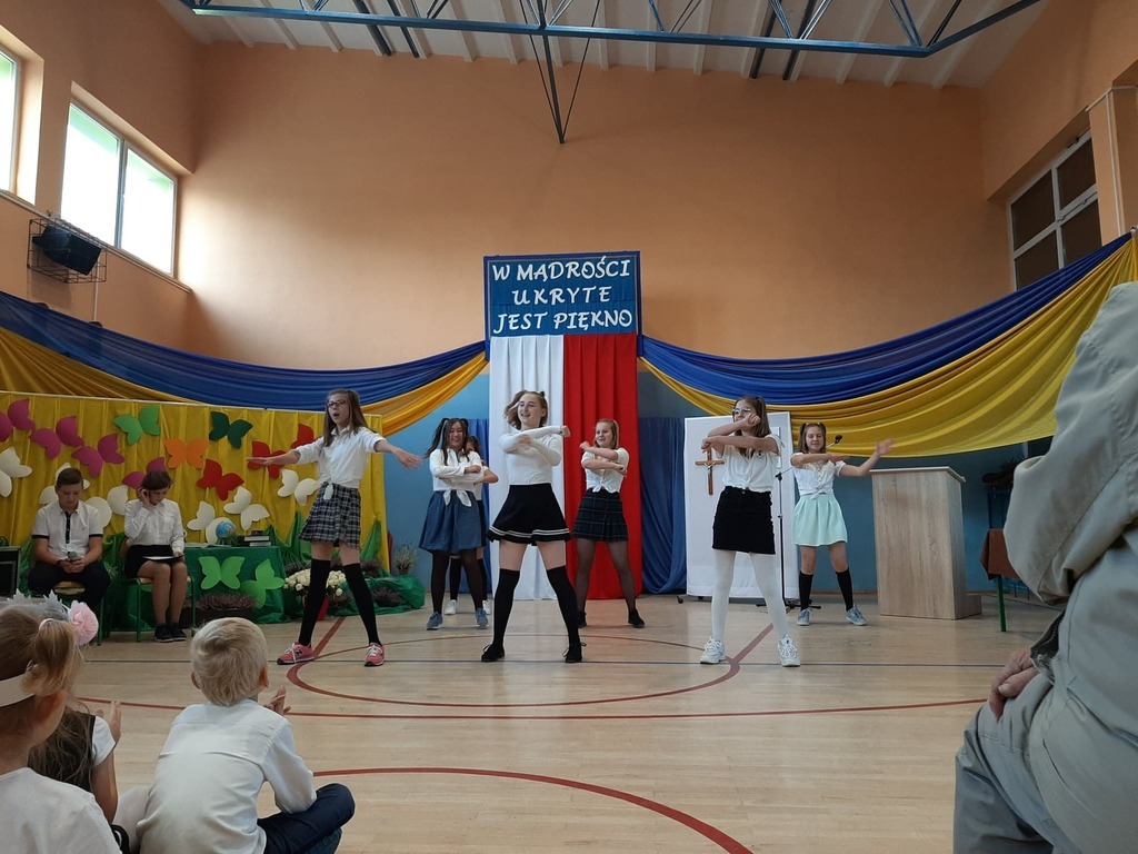 Uczniowie zaprosili wszystkich zebranych na część artystyczną, w której pokazali swoje talenty muzyczne, taneczne i aktorskie. Nad uroczystością czuwała p. Maciejewska, której serdecznie dziękujemy!