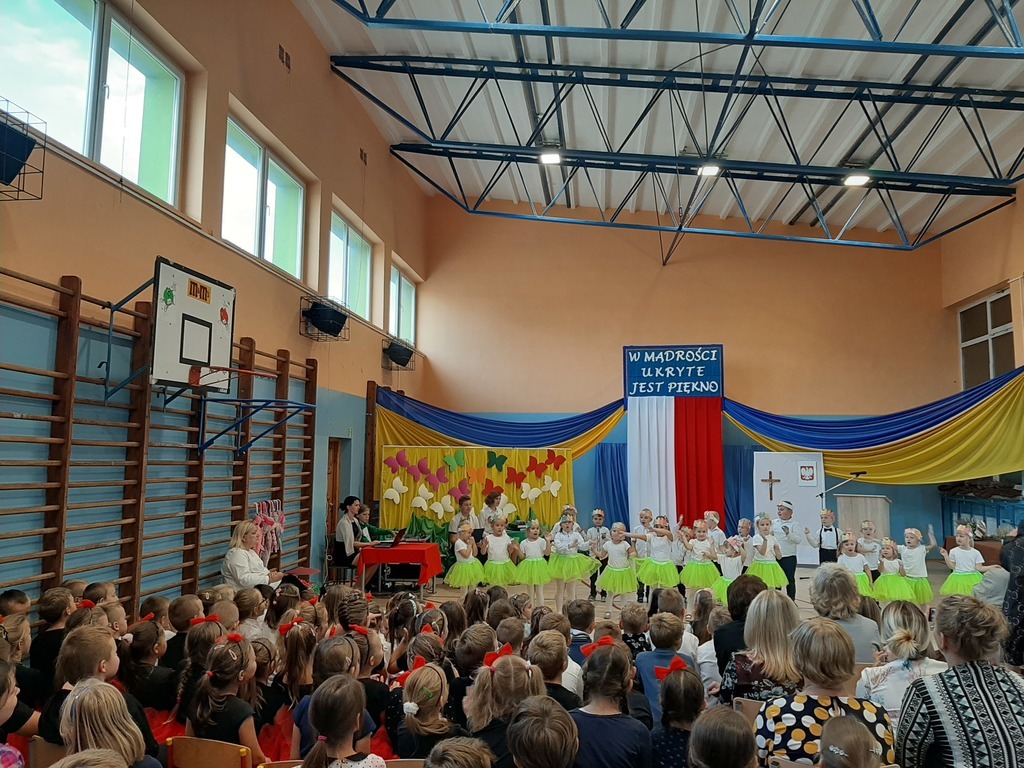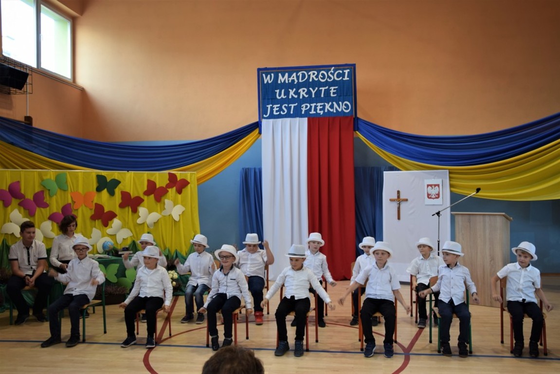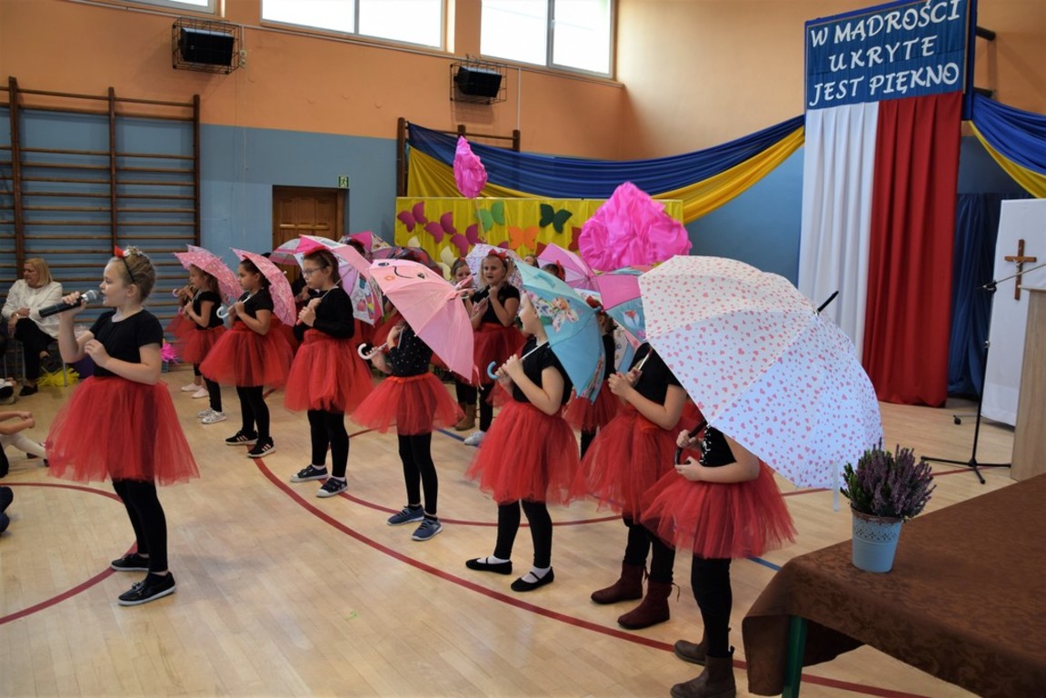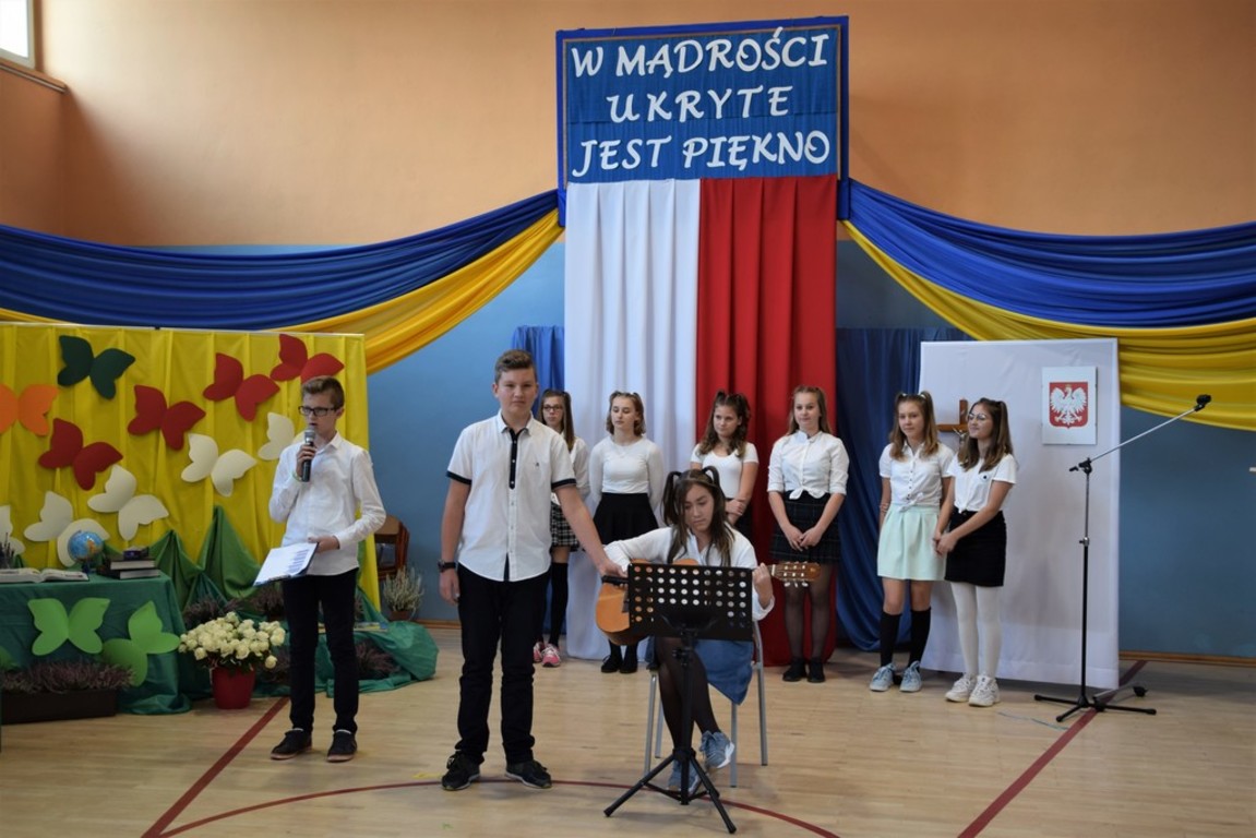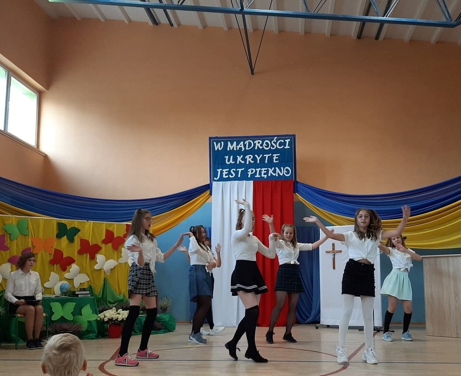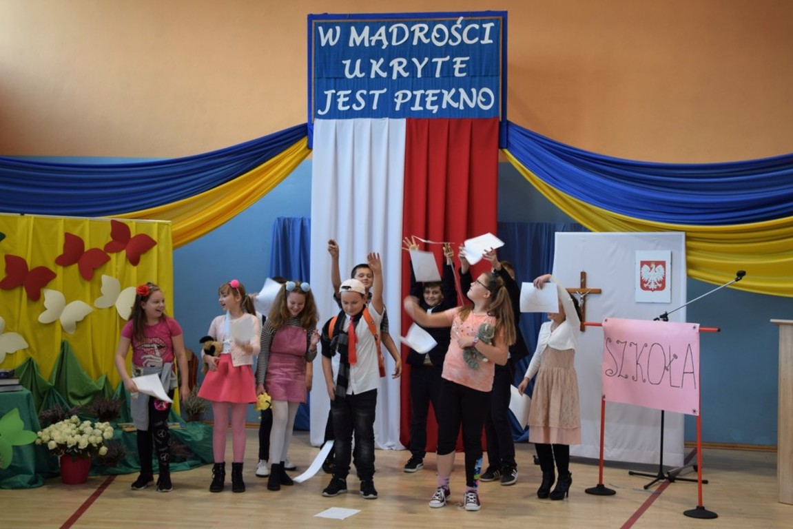 Uczniowie zaprosili wszystkich zebranych na część artystyczną, w której pokazali swoje talenty muzyczne, taneczne i aktorskie. Nad uroczystością czuwała p. Maciejewska, której serdecznie dziękujemy!