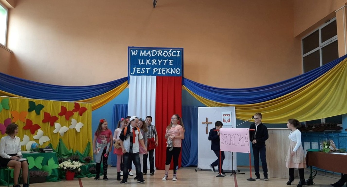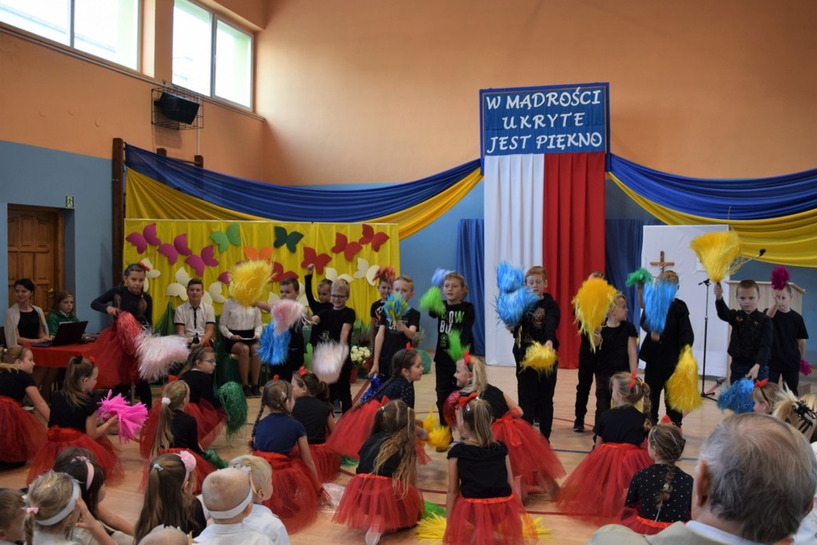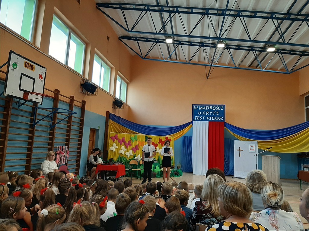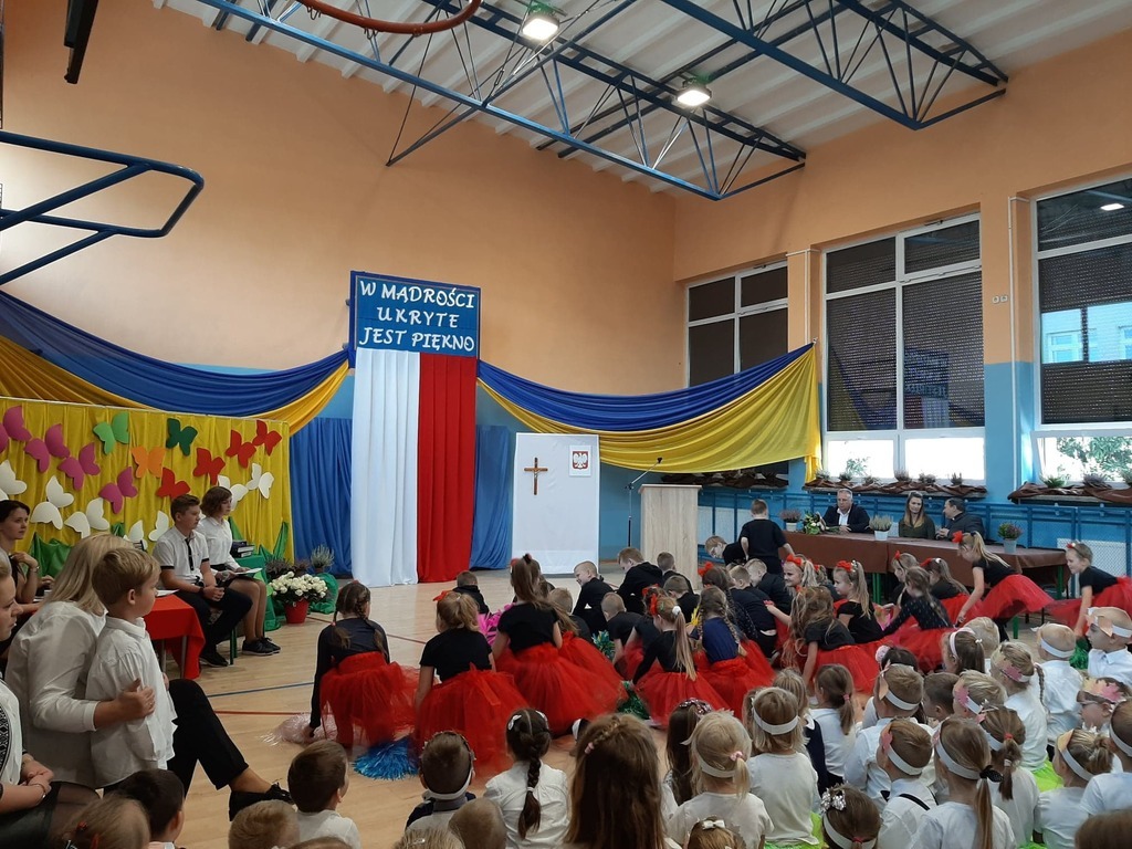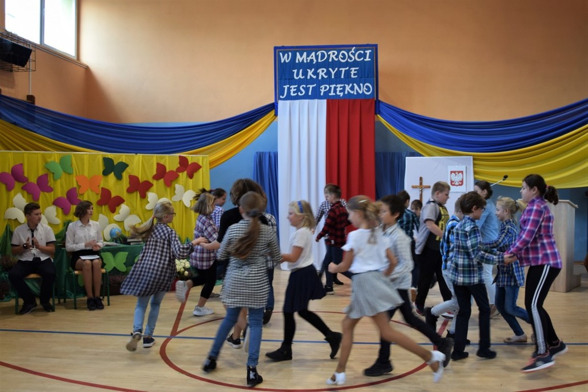 Uczniowie zaprosili wszystkich zebranych na część artystyczną, w której pokazali swoje talenty muzyczne, taneczne i aktorskie. Nad uroczystością czuwała p. Maciejewska, której serdecznie dziękujemy!
