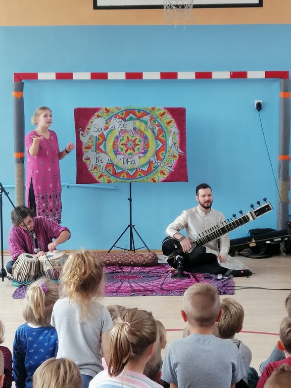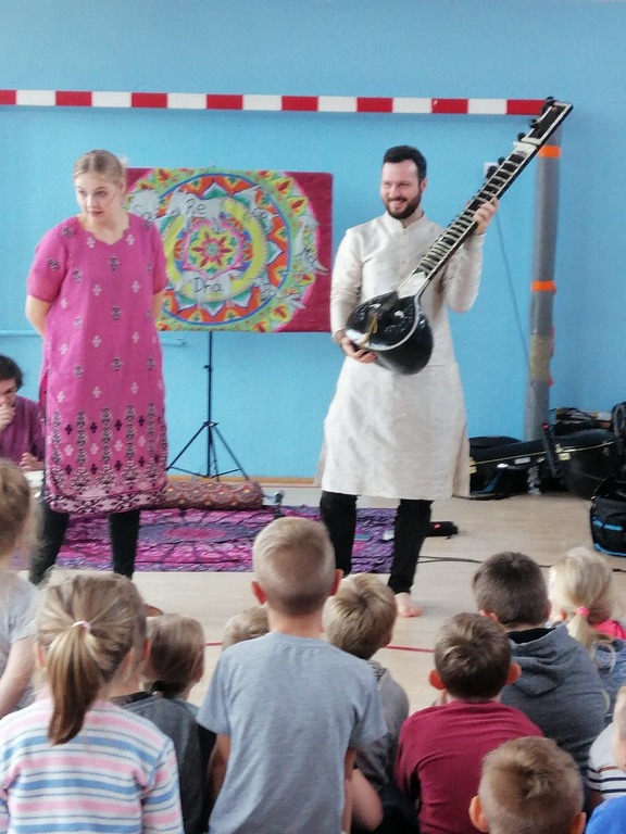 W miniony wtorek nasi najmłodsi uczniowie i przedszkolaki udali się w muzyczną podróż do Indii. Poznaliśmy niezwykłe instrumenty takie jak sitar oraz tabla (bębny). Nauczyliśmy się także śpiewać hinduską gamę. Niezwykłe dźwięki na długo zostaną w naszych głowach.