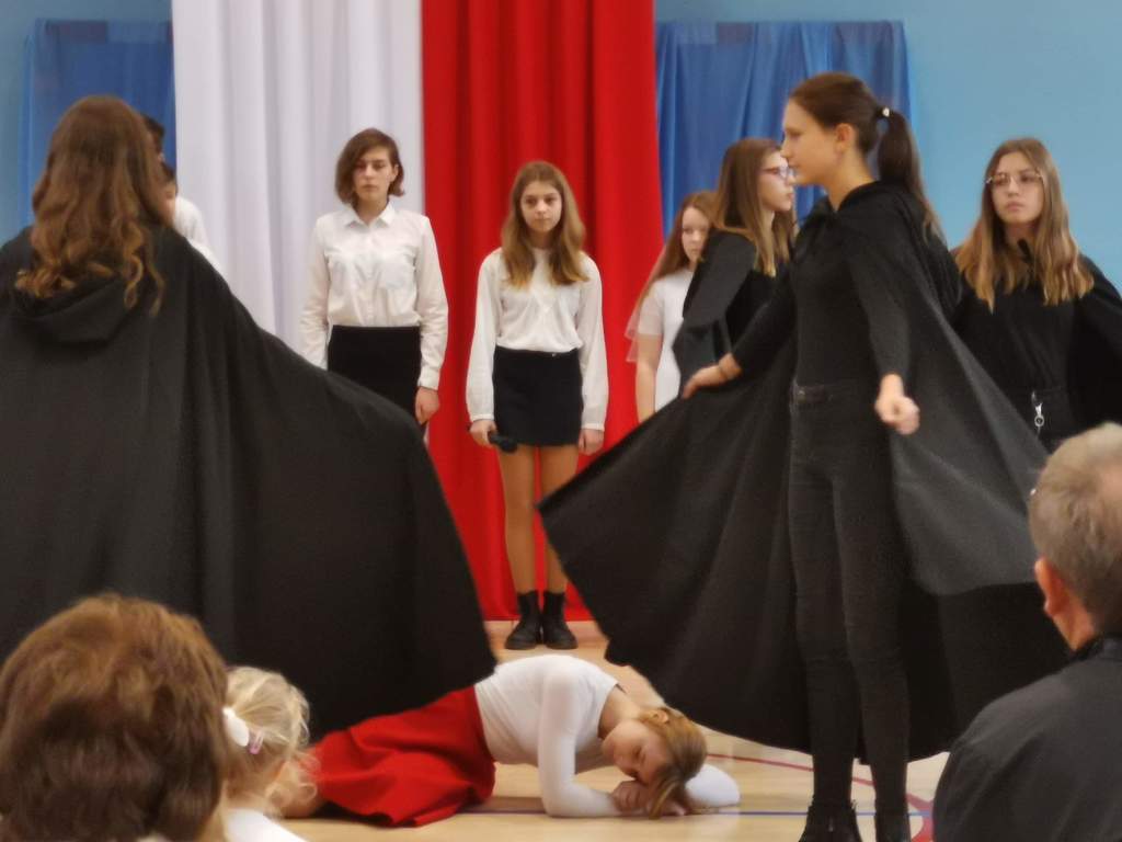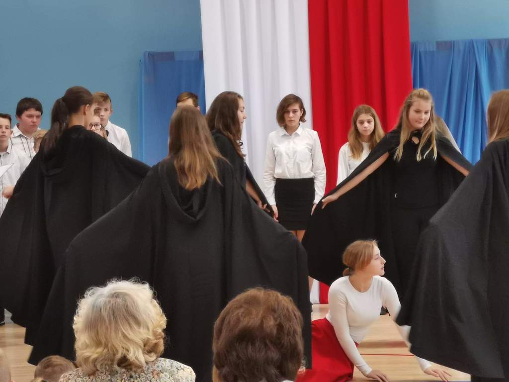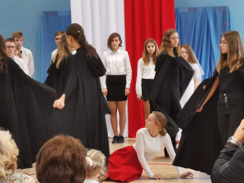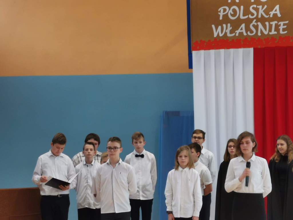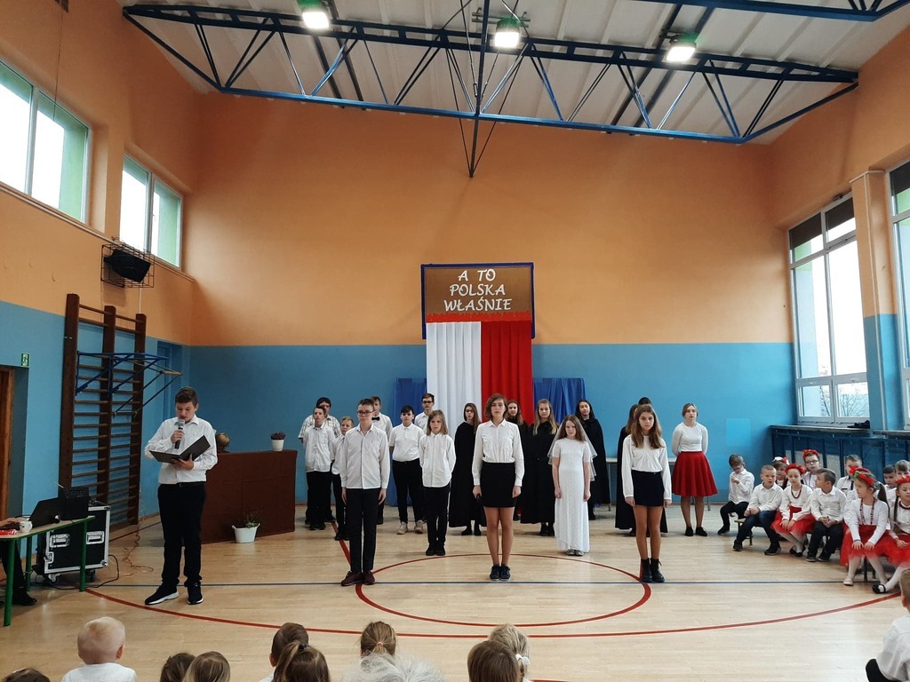 By upamiętnić te wyjątkowe wydarzenia, uczniowie naszej szkoły wystąpili w niezwykłym apelu przygotowanym przez p.J.Wolnicką i A.Waszak. O symbolicznej godzinie 11.11 cała szkoła zaśpiewała 4 zwrotki hymnu państwowego.
