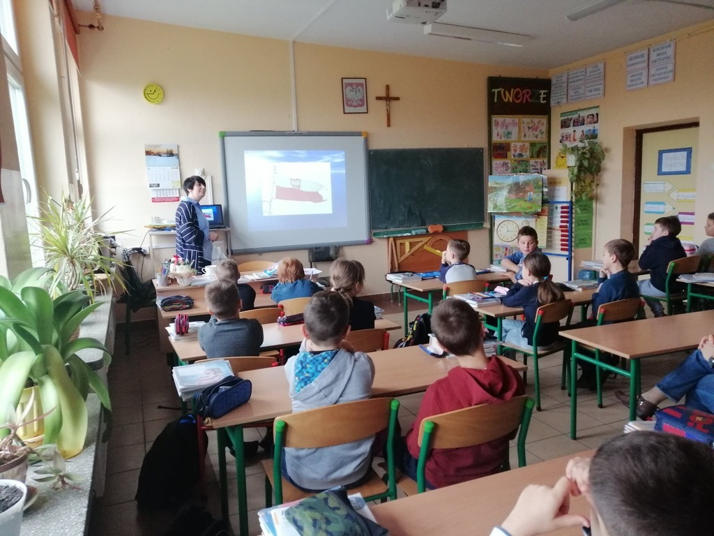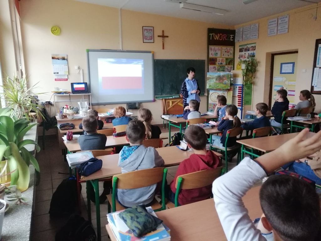 12 listopada 2019 roku odbyło się spotkanie uczniów klas młodszych z pracownikiem IPN w Poznaniu p. Aleksandrą Kudłą. Zajęcia poświęcone zostały tematyce patriotycznej ,,Flaga”. Dzieci miały możliwość zapoznania się z historią polskiej flagi oraz jej znaczeniem dla naszego państwa. Dowiedziały się również kiedy, w jakich okolicznościach i miejscach wywiesza się flagę jako symbol naszego narodu.